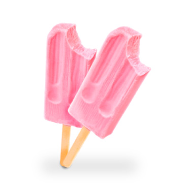 Palito helado de agua de frutilla con pulpa de frutilla.